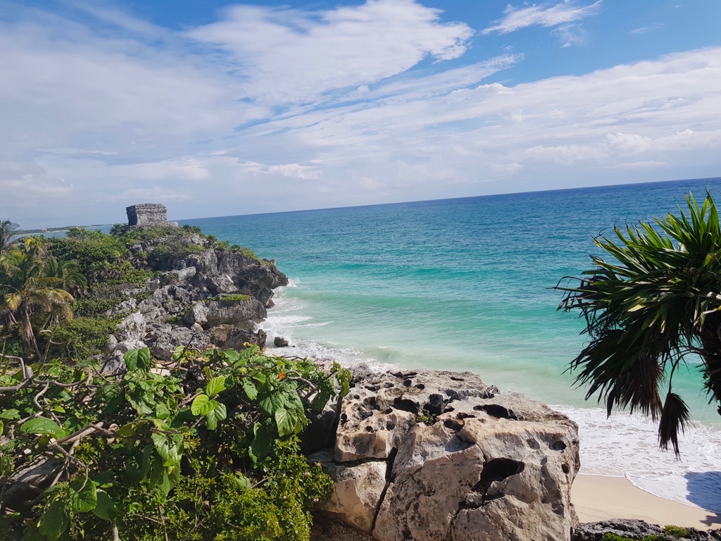 Natürlich besuchen wir ebenfalls die Maya-Stätte von Tulum, welche direkt am türkisfarbenen Meer liegt. Der Anblick ist wunderschön und die Geschichte wirklich spannend. Wir sind bereits am früheren Morgen auf Entdeckungstour, aber auch da hat es schon sehr viele Touristen.