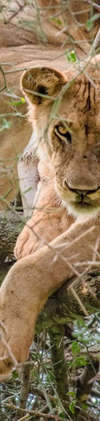 In der Trockenzeit von Juli bis Oktober kannst du hier die Gewohnheiten der zahlreichen tierischen Bewohner besonders gut beobachten. Baumkletternde Löwen, durch die Akazien huschende Zebramangusten, faulenzende Paviane oder das farbenfrohe Schauspiel der vielen Vogelarten am See.
