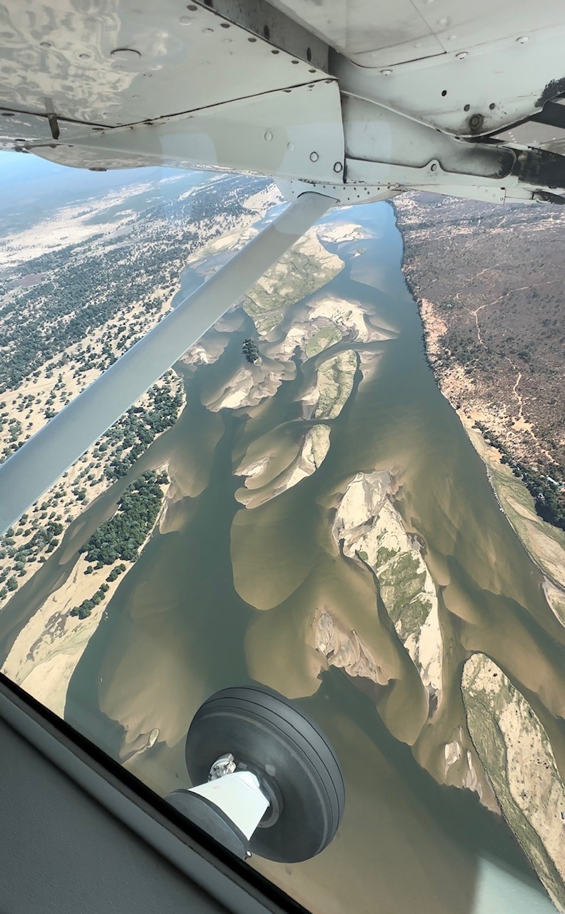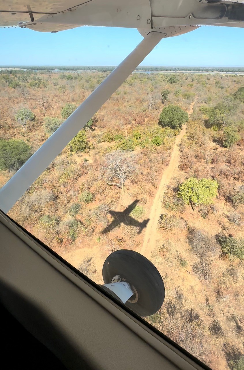 Cessna-Abenteuer im Himmel über Afrika: Unsere Reise führt uns im Buschflieger weiter in den Lower Zambezi National Park, der ein wahrer Garten Eden ist. Während wir im Buschflieger unterwegs sind, beeindruckt mich das Schattenspiel. Wir sind nun im Lower Zambezi Nationalpark gelandet. Wenn man nach wahrer und unberührter Wildnis sucht, ist man hier genau richtig. Ein wunderbares Abenteuer abseits des Massentourismus startet.