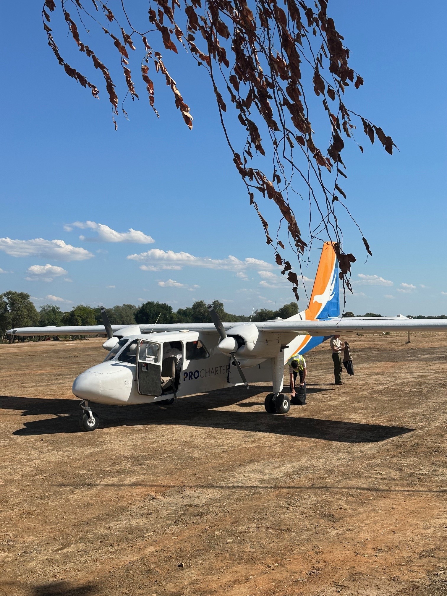 Mit einem Kleinflugzeug fliegen wir von Lusaka nach Jeki Airport. Dieser Flughafen befindet sich im Lower Zambezi Nationalpark. Der Anflug ist spektakulär! Wir sehen den Lower Zambezi Nationalpark und den Zambezi-Fluss von oben. Wir entdecken Elefanten und Hippos beim Abkühlen. Was für ein grossartiger Start in ein einzigartiges Abenteuer.