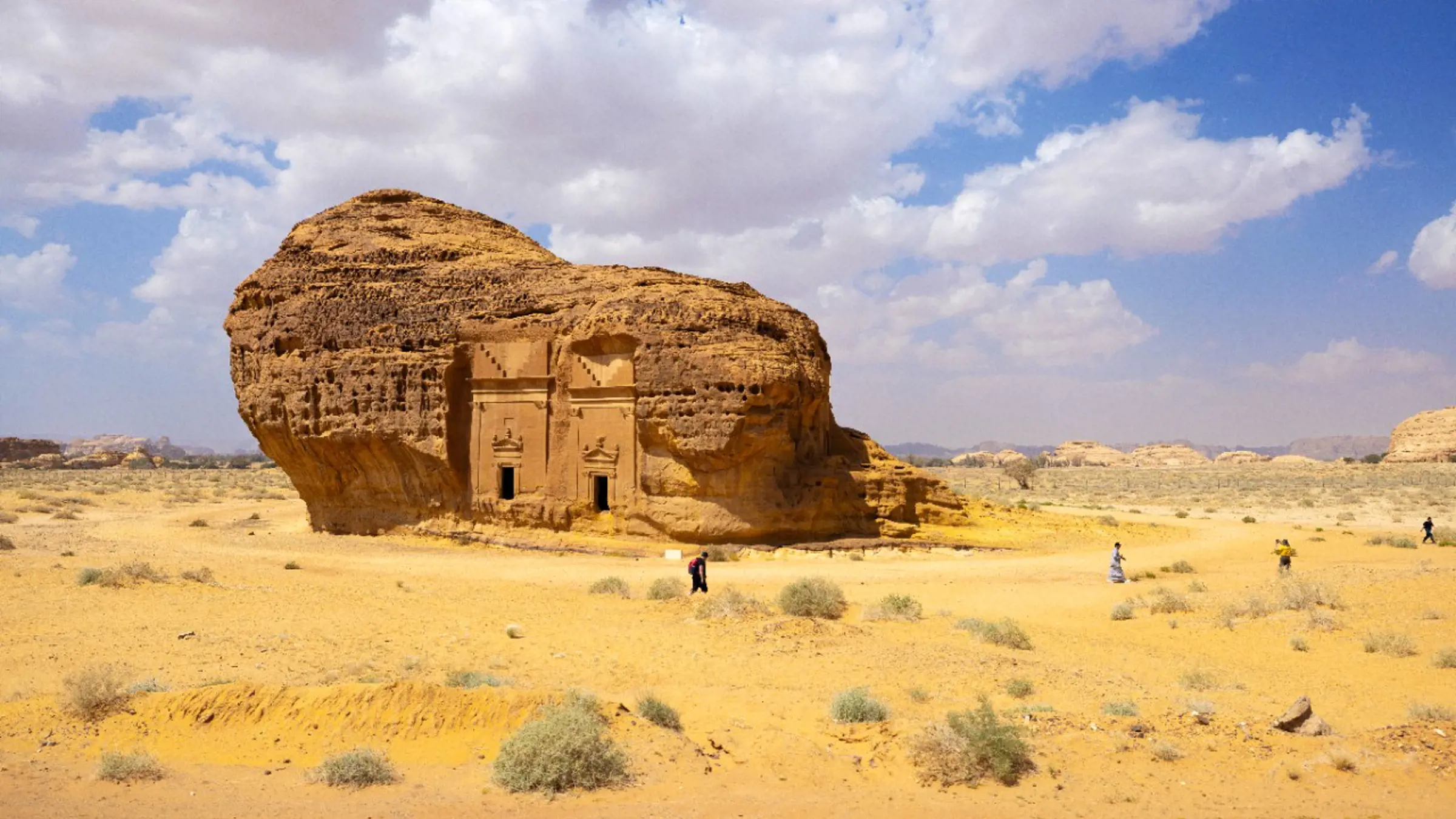 Wir starten den Tag früh mit einem Besuch in Hegra, der südlichen Hauptstadt des nabatäischen Königreichs. Unter der Führung lokaler Erzählerinnen erkunden wir mehrere monumentale Gräber. Später besuchen wir eine familiengeführte Zitrusfarm der Familie Al Joud, lernen über ihre Erzeugnisse und geniessen ein frisches Mittagessen unter den Bäumen. Den Nachmittag hast du Zeit für eigene Erkundungen. Besuche zum Beispiel den Harrat-Aussichtspunkt oder erlebe den Sonnenuntergang von der Stadt aus.