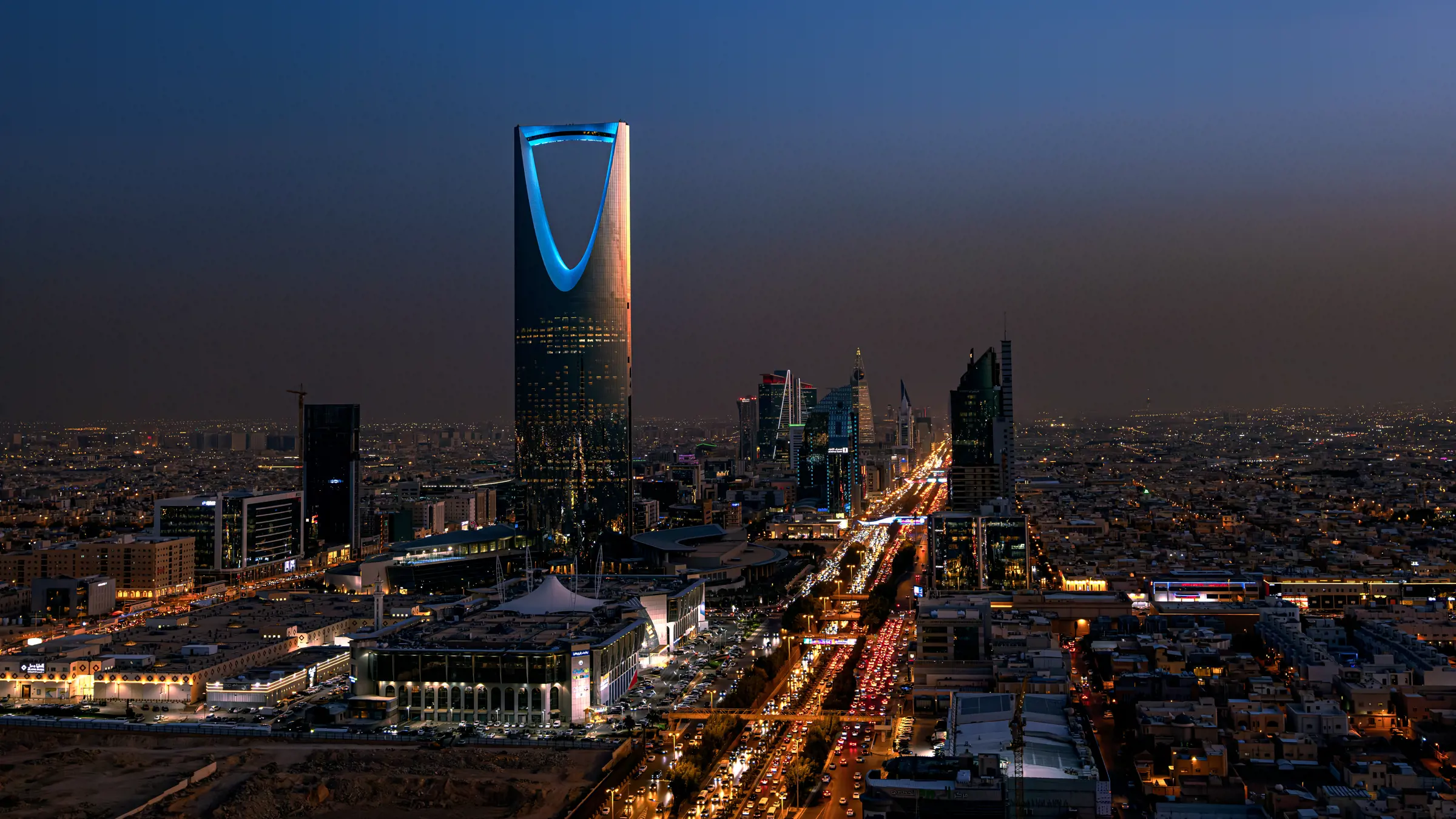 Blicke vom Kingdom Tower auf das nächtliche Riad