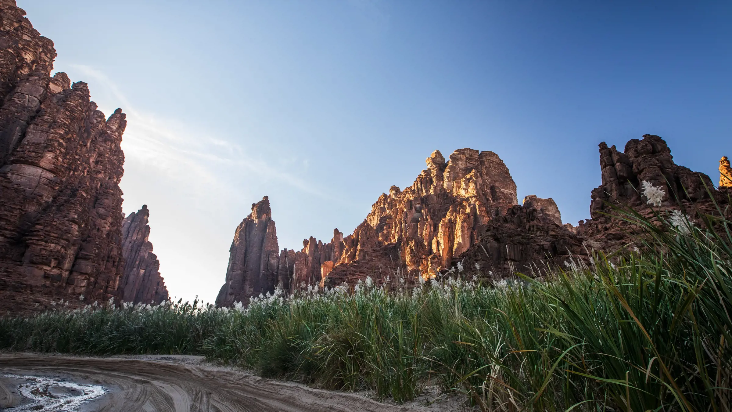 Heute Morgen brechen wir in Geländewagen zu einem Tagesausflug nach Wadi Disah auf, bekannt als das «Tal der Palmen». Wir erkunden dieses felsige Tal mit seinen Süßwasserquellen und Palmen. Während unseres Offroad-Abenteuers durchqueren wir üppige Vegetation und folgen einem rauschenden Bach. Zum Mittagessen geniessen wir ein traditionelles Bedouinen-Essen unter Palmen. Anschliessend erkunden wir zu Fuss einen Teil des 15 Kilometer langen Canyons und bewundern die dramatische Landschaft, bevor wir zum Hotel zurückkehren.