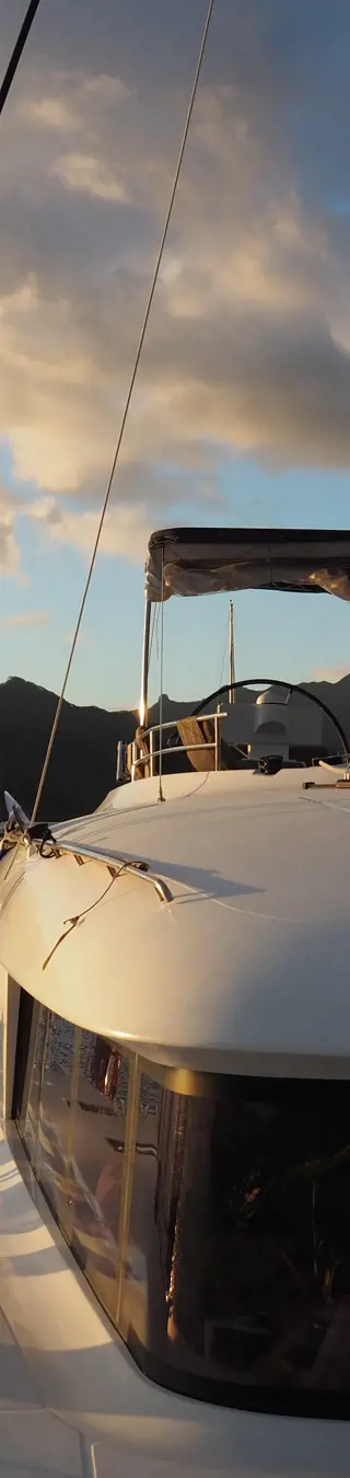 - Das Schiff: komfortabler Segelkatamaran mit Salon, Essbereich, Sonnendeck, 6 klimatisierte Kabinen mit Dusche/WC. Kajaks, Paddleboards, Schnorchelausrüstung.