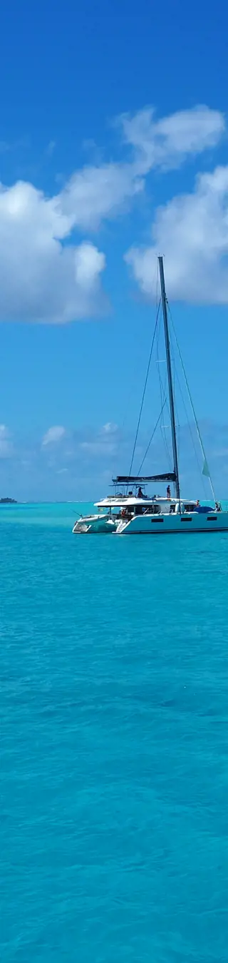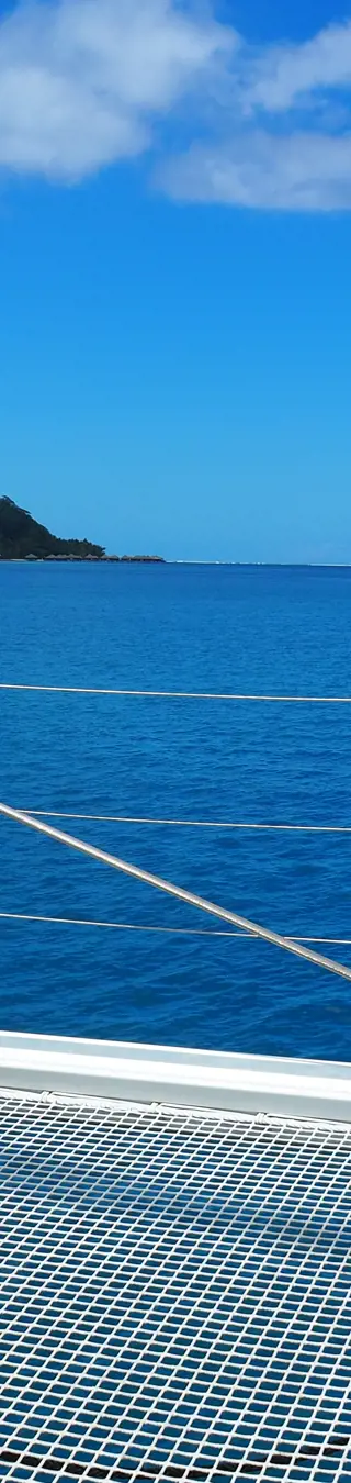 An der Marina Uturoa auf Raiatea gehst du an Bord des Katamarans. Kurze Fahrt zu einem Motu (kleine Insel), wo du die Möglichkeit zum Schwimmen, Schnorcheln und Relaxen am Strand hast.