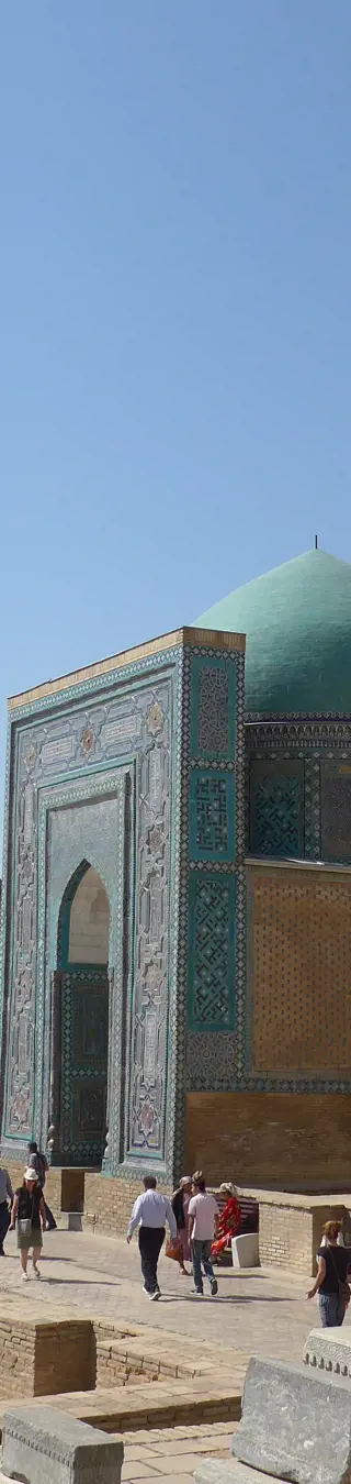 Heute hast du Zeit zur freien Verfügung. Wenn du das Ausflugspaket gebucht hast, besuchst du eine Manufaktur für Seidenteppiche und eine usbekische Handwerkerfamilie, die aus Maulbeerbaumrinde Papier herstellt. Du siehst die Sternwarte des Ulug Beg und die Ruine der Bibi Khanum-Moschee. Das palastähnliche Mausoleum Gur Emir bestaunst du von innen. Es beherbergt das Grab von Tamerlan, der als berühmter Bauherr seine Hauptstadt zu einem Paradies machte, aber auch als gefürchteter Eroberer in die Geschichte einging.
