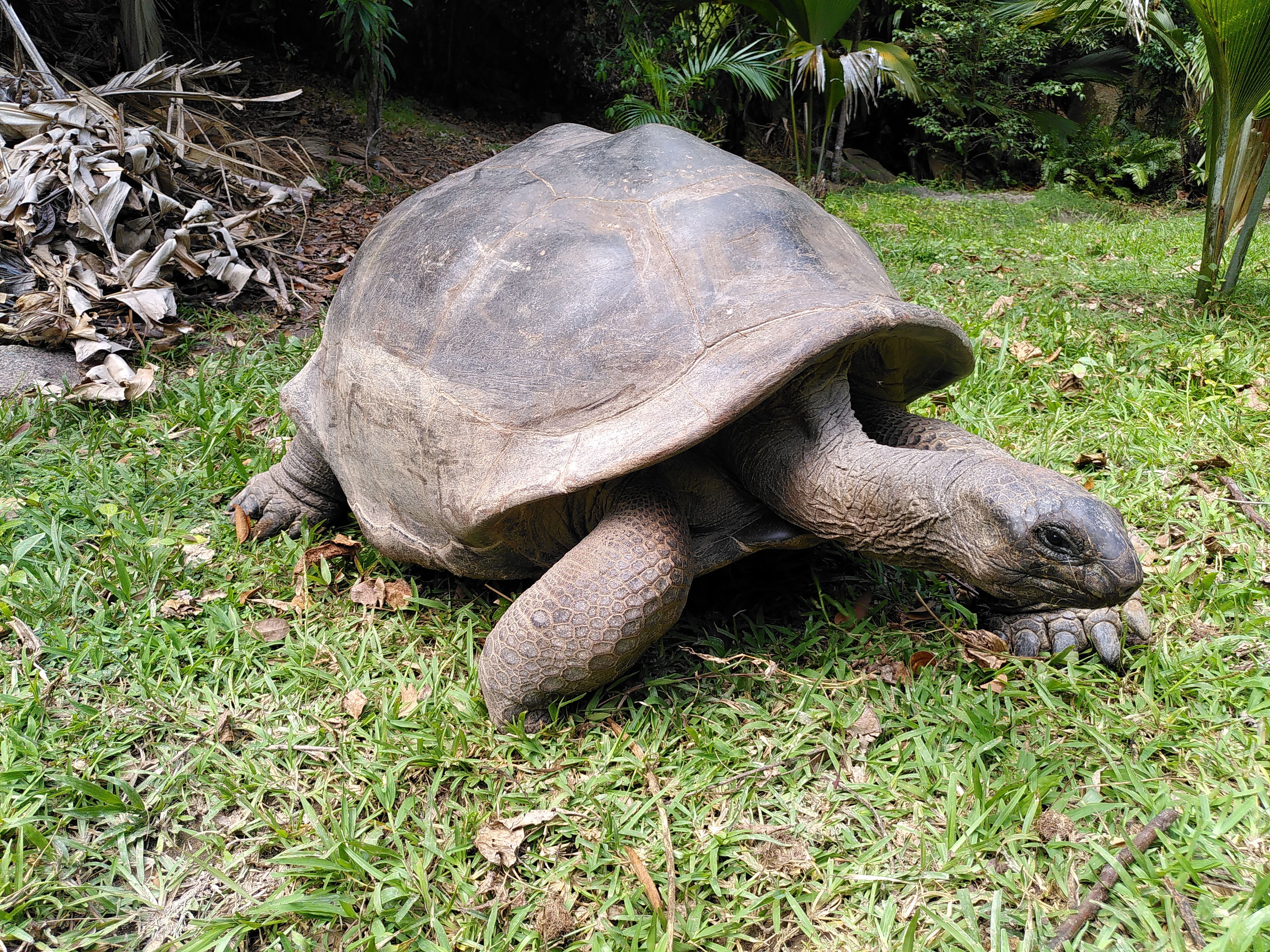 Neben der Riesenschildkröte leben auf den Seychellen auch die echte Karettschildkröte und die grüne Meeresschildkröte. Beide können im Wasser oder mit etwas Glück bei der Eiablage an Land beobachtet werden. Wir waren hier leider etwas zu spät dran...
