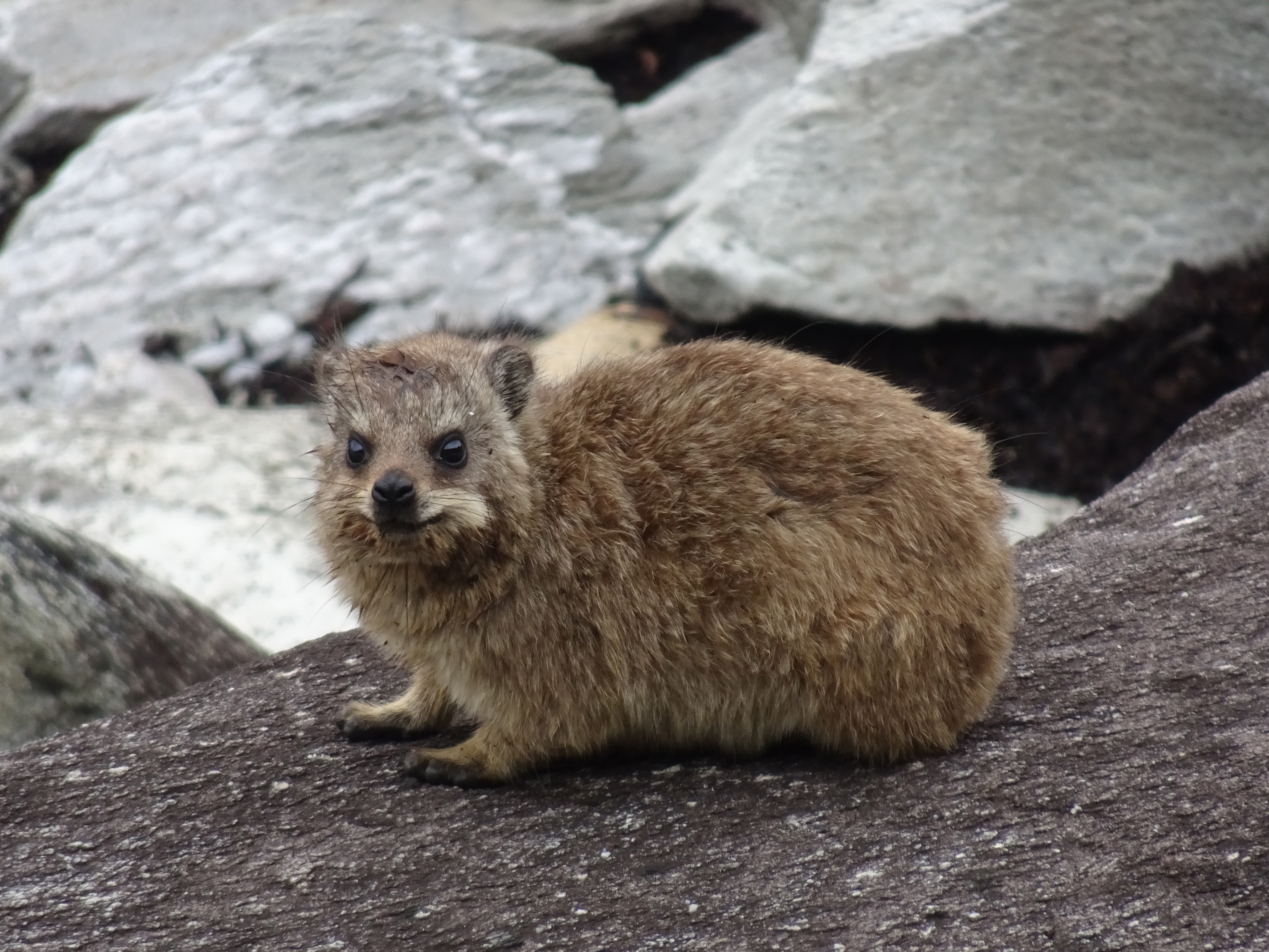 Wir wandern am frühen Vormittag direkt von unserem Campsite los. Unser Ziel ist der Wasserfall, der in rund 1,5 Stunden Laufzeit pro Weg erreichbar ist. Wir wandern los über idyllische Küstenwege und durch mystische Waldstücke, wo wir bereits die ersten farbenprächtigen Vögel entdecken. An einem felsigen Küstenabschnitt ziehen dann plötzlich kleine, pelzige Punkte unsere Aufmerksamkeit auf sich. Beim Näherkommen stellen wir fest, dass es sich um eine grosse Gruppe Klippschliefer handelt, die die frühen Morgenstunden auf den Felsen geniesst.