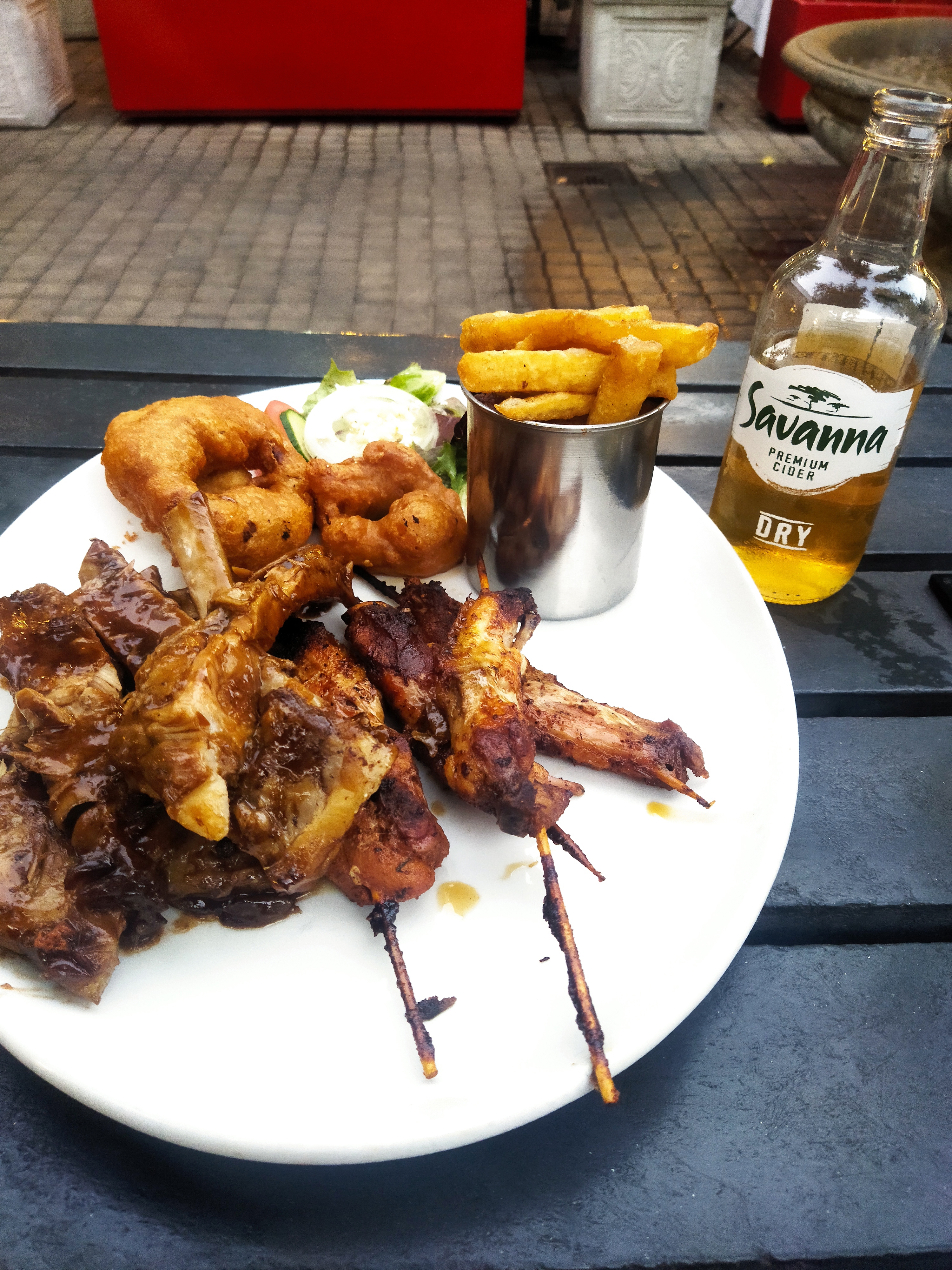 Nach etwas mühsamer Suche nach der Pick-up-Station am Flughafen Kapstadt gelangen wir zur Vermietstation unseres Campers. Bei der Fahrzeuginstruktion dann die Erkenntnis, dass die Wasserpumpe in dem für uns vorgesehenen Fahrzeug gar nicht funktioniert. Nach rund zwei Stunden Wartezeit wird uns ein neuer Wagen zur Verfügung gestellt. Endlich düsen wir also los. Unser erstes Ziel ist Franshoek, rund eine Stunde Fahrt. Einige Zeit später als geplant treffen wir dort auf unserem vorreservierten Campingplatz ein. Nachdem wir uns mit den ersten Lebensmitteln im Supermarkt versorgt haben, kehren wir zum Abendessen in eines der zahlreichen Restaurants und Pubs ein und geniessen bereits unseren ersten Savanna Cider. Auf dem Weg Richtung Frankshoek haben in unserem Camper übrigens bereits alle Warnleuchten in grellem Rot geleuchtet, aber diese Sorgen verschieben wir nun mal auf morgen.