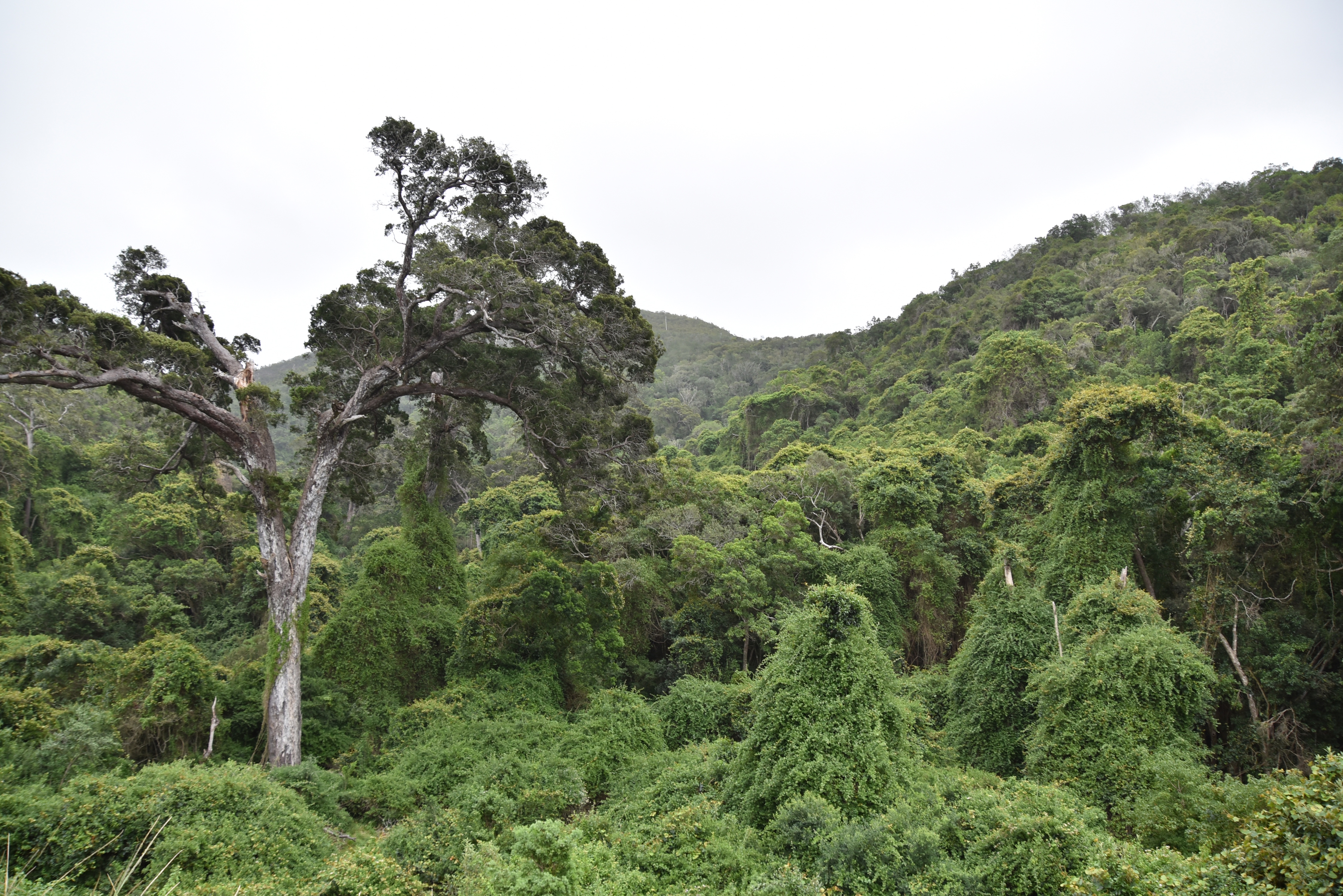 Wir fahren nach Plettenberg Bay von der N2 ab und nehmen die «romantischere» Route. Die Fahrt vorbei am Nature Valley ist wirklich wunderschön. Beim Grootrivier-Pass erwartet uns eine kurvenreiche Passstrasse, umgeben von dichtem, sattgrünem Dschungel. Der Abstecher hat sich bis hierhin definitiv gelohnt. Gemäss meinen Recherchen soll diese tolle Strecken noch weitergehen, via Bloukrans-Pass, bevor man kurz vor dem Tsitsikamma-Nationalpark wieder auf die N2 kommt. Das Schild ist zwar rot durchgestrichen, aber die Strasse nicht gesperrt, weshalb wir uns entscheiden, es einfach mal auszuprobieren. Ein grosser Fehler, wie sich später herausstellt. Die Strasse wird nicht mehr unterhalten, und durch das Dickicht, das immer weiter in die Strasse hineinwächst, wird die Durchfahrt immer enger. Wir versuchen nach einem Drittel der Strecke zu wenden, was mit unserem grossen Motorhome allerdings ein Ding der Unmöglichkeit ist. Es heisst also: Augen zu und durch. Zu unserem Glück ist die Strasse trotz allem noch durchgehend, sodass wir irgendwann nach einer abenteuerreichen, schweisstreibenden Fahrt wieder bei der Hauptstrasse ankommen.