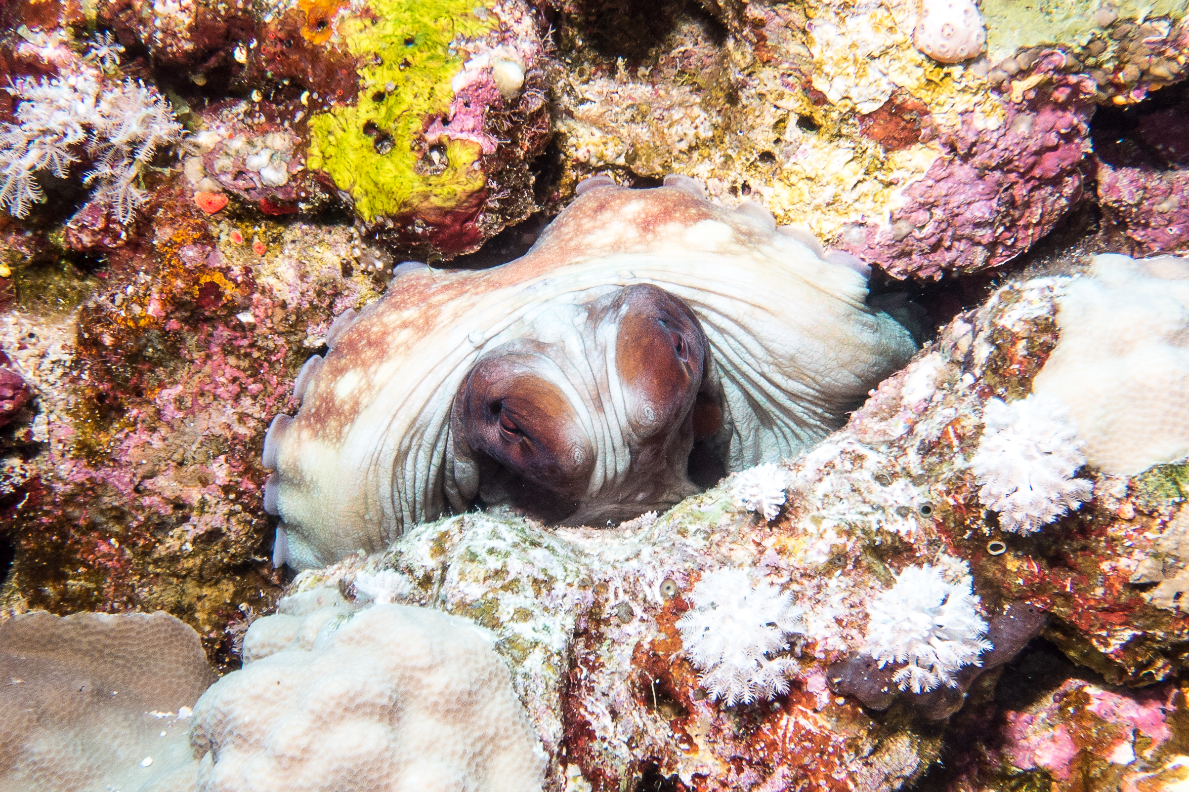 Es lohnt sich, immer wieder nach den versteckten Lebewesen des Riffs Ausschau zu halten. Besonders die Tintenfische, welche sich innerhalb von Sekunden farblich der Umgebung anpassen können, sind sehr faszinierende Kreaturen zum Beobachten.