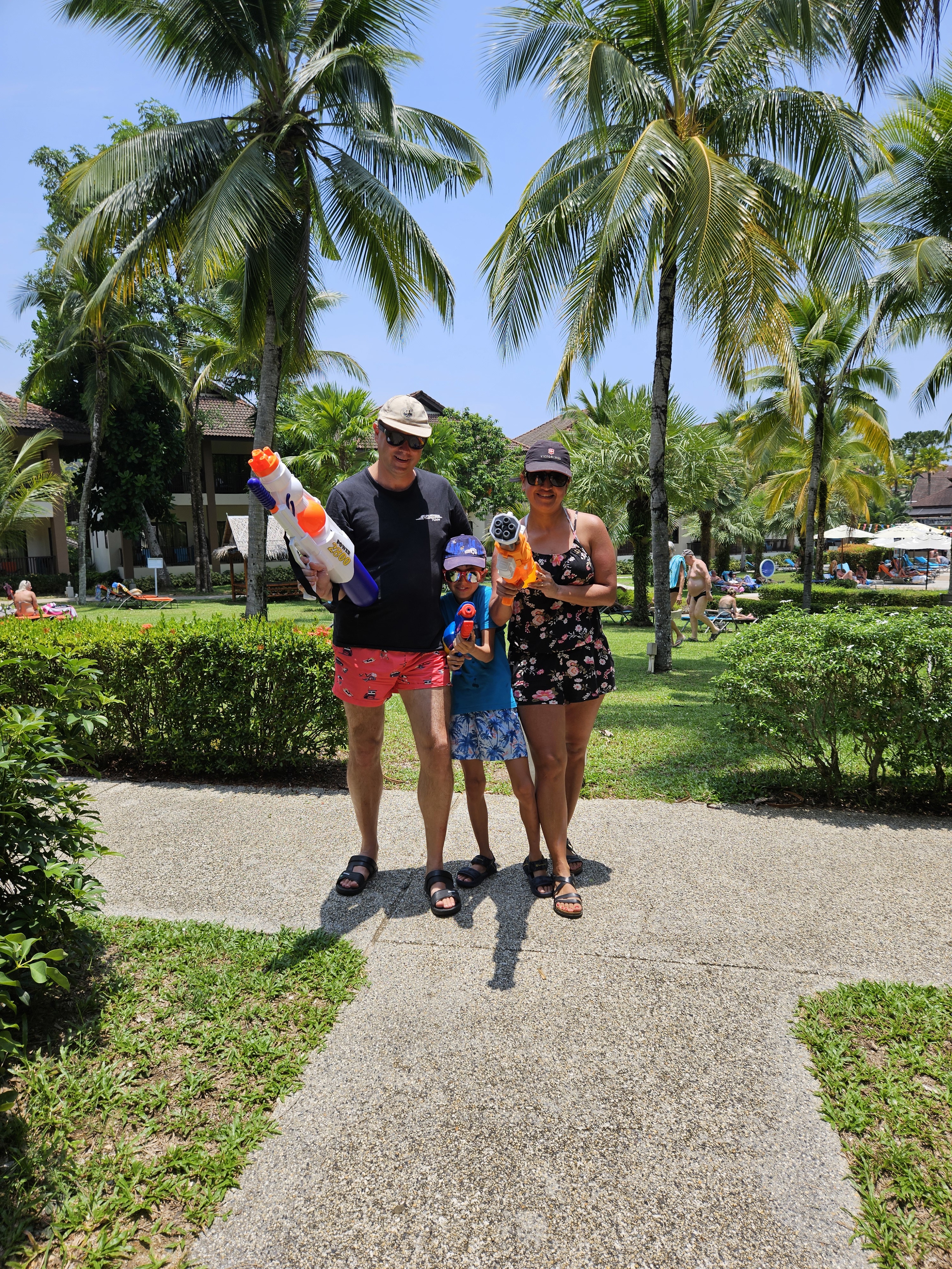 Songkran ist das traditionelle thailändische Neujahrsfest und wird als die grösste Wasserschlacht der Welt gefeiert. Es beginnt traditionell mit dem Besuch des Tempels, wo Buddha-Statuen zur Erneuerung mit Wasser übergossen werden, und viele Thais nutzen die Gelegenheit, ihre Eltern und Grosseltern zu besuchen. Doch danach gibt es kein Halten mehr – überall wird gespritzt, ob aus Autos oder von den Strassenrändern. Mit unseren Wasserpistolen bewaffnet, stürzen wir uns ins Getümmel, um uns und andere nasszuspritzen, und besonders die Kinder haben riesigen Spass dabei. Wichtig ist, dass alles, was nicht nass werden darf, auch wasserfest verpackt wird.