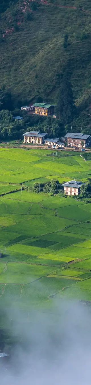 Geniesse den tollen Ausblick ins grüne Punakha Tal