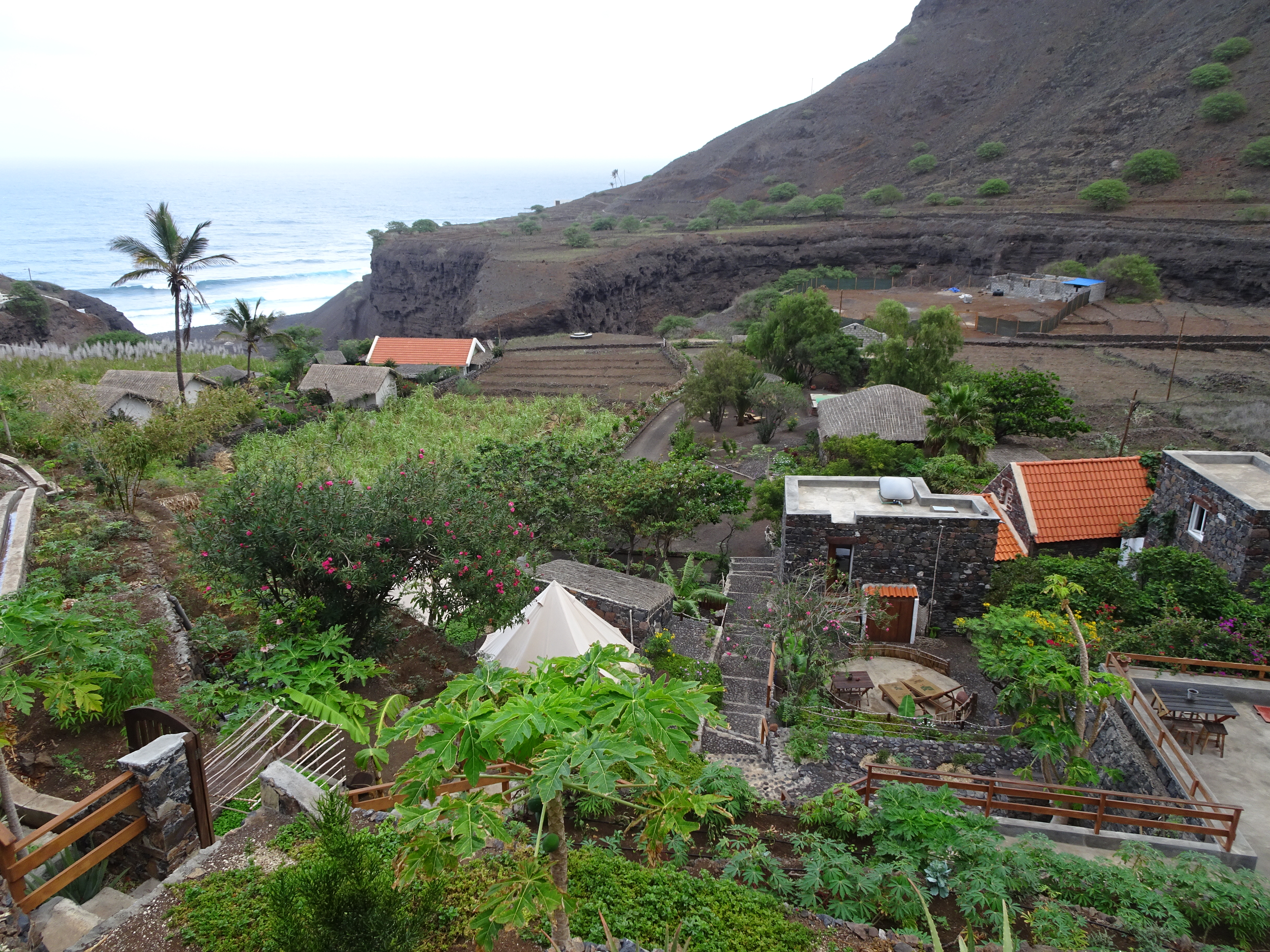 Wer sucht, der findet. Und zwar ein herziges kleines B&B, versteckt in den Zuckerrohrplantagen. Während den Tageswanderungen wird unser Gepäck jeweils bereits in die nächste Unterkunft transportiert – was für ein Luxus. In gemütlicher Gesellschaft werden wir mit lokalen Spezialitäten bekocht und lassen den Tag mit einem Grogue, dem kapverdischen Nationalgetränk aus Zuckerrohr, ausklingen.