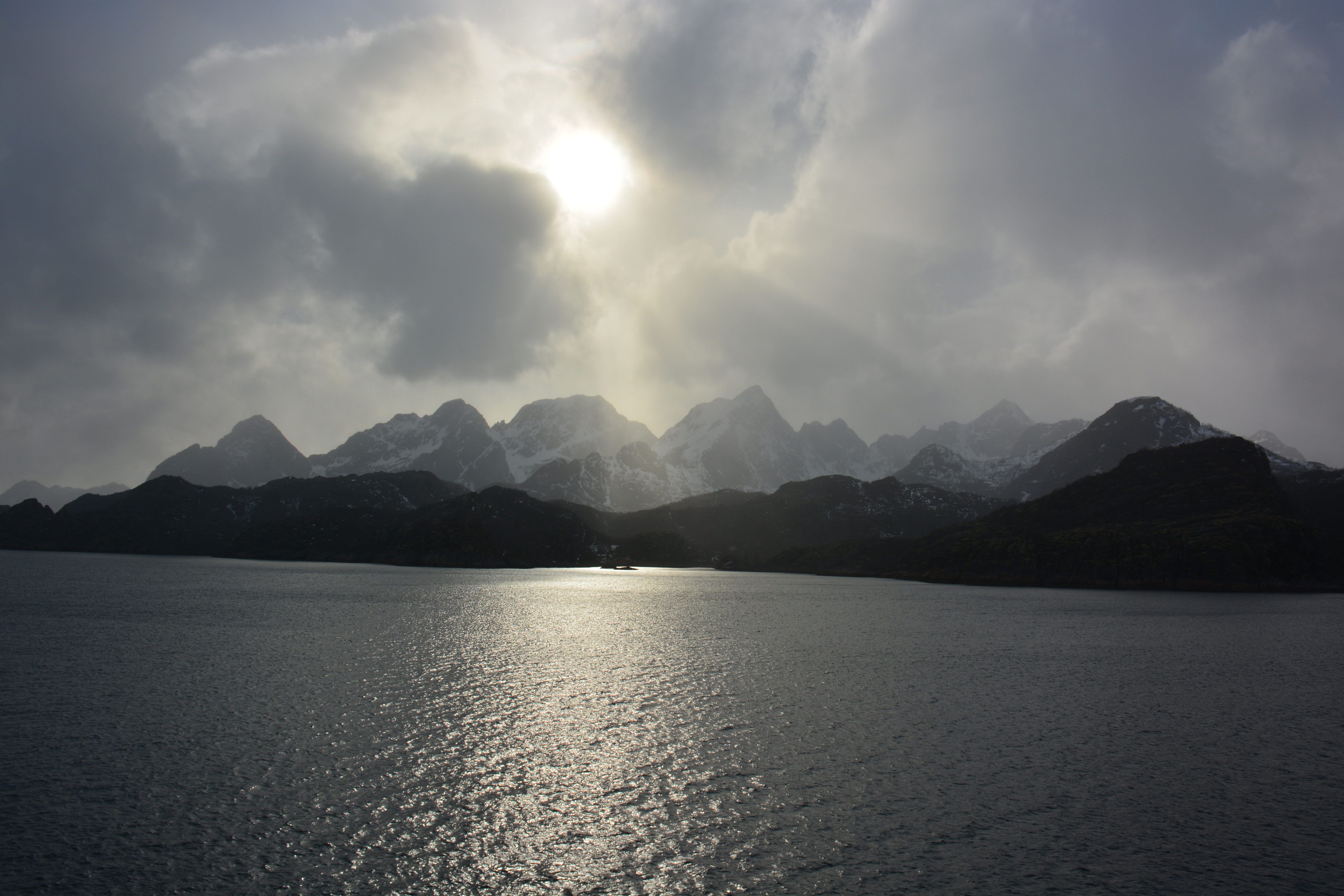 Im Winter kann das Schiff wegen den Vibrationen nicht in den engen Trollfjord fahren, da es Lawinen auslösen kann. Die Fjorde mit den engen und steilen Felswänden sind zu jeder Jahreszeit eindrücklich und einen Besuch wert. Wir haben Glück und erspähen Weisskopfseeadler.