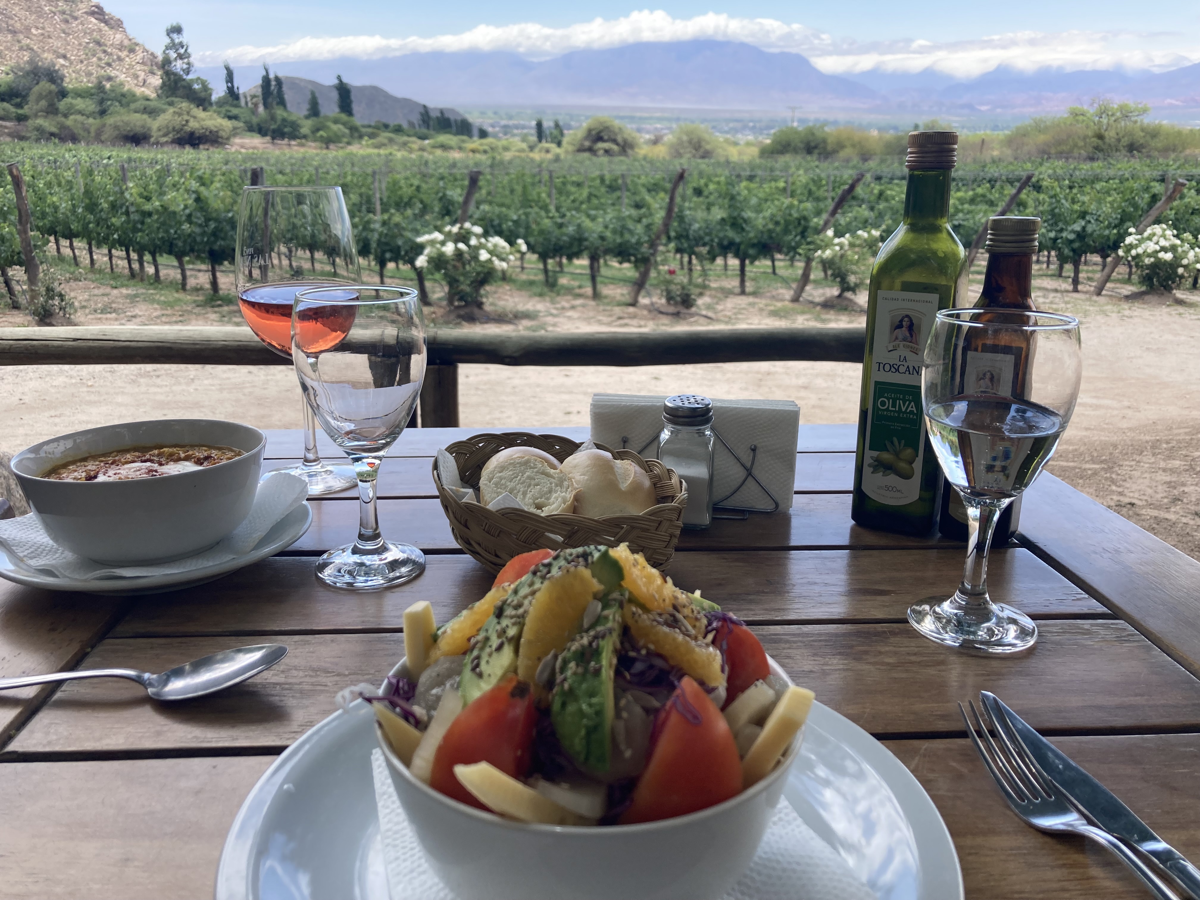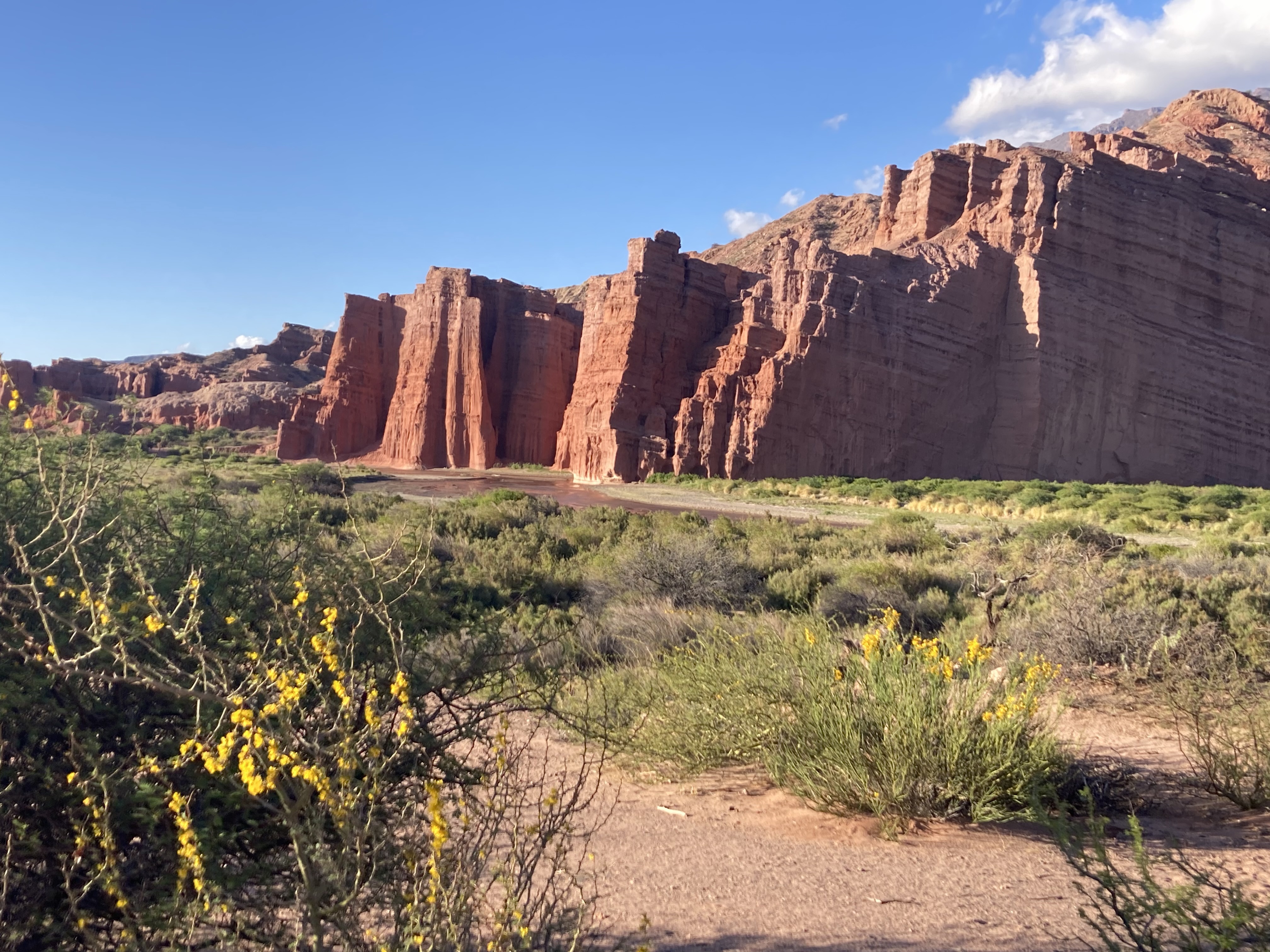 Auf dem Weg zum Canyon mit den sieben Wasserfällen liegt das kleine Weingut «LAS NUBES» (die Wolken). Ein passender Name für die Szenerie, und wir geniessen ein sehr schmackhaftes Mittagessen mit Blick über die Weinreben und das Tal, in dem Cafayate ein wichtiger Verkehrsknotenpunkt ist. Von hier aus biegen wir auf die legendäre Ruta 40 ab.