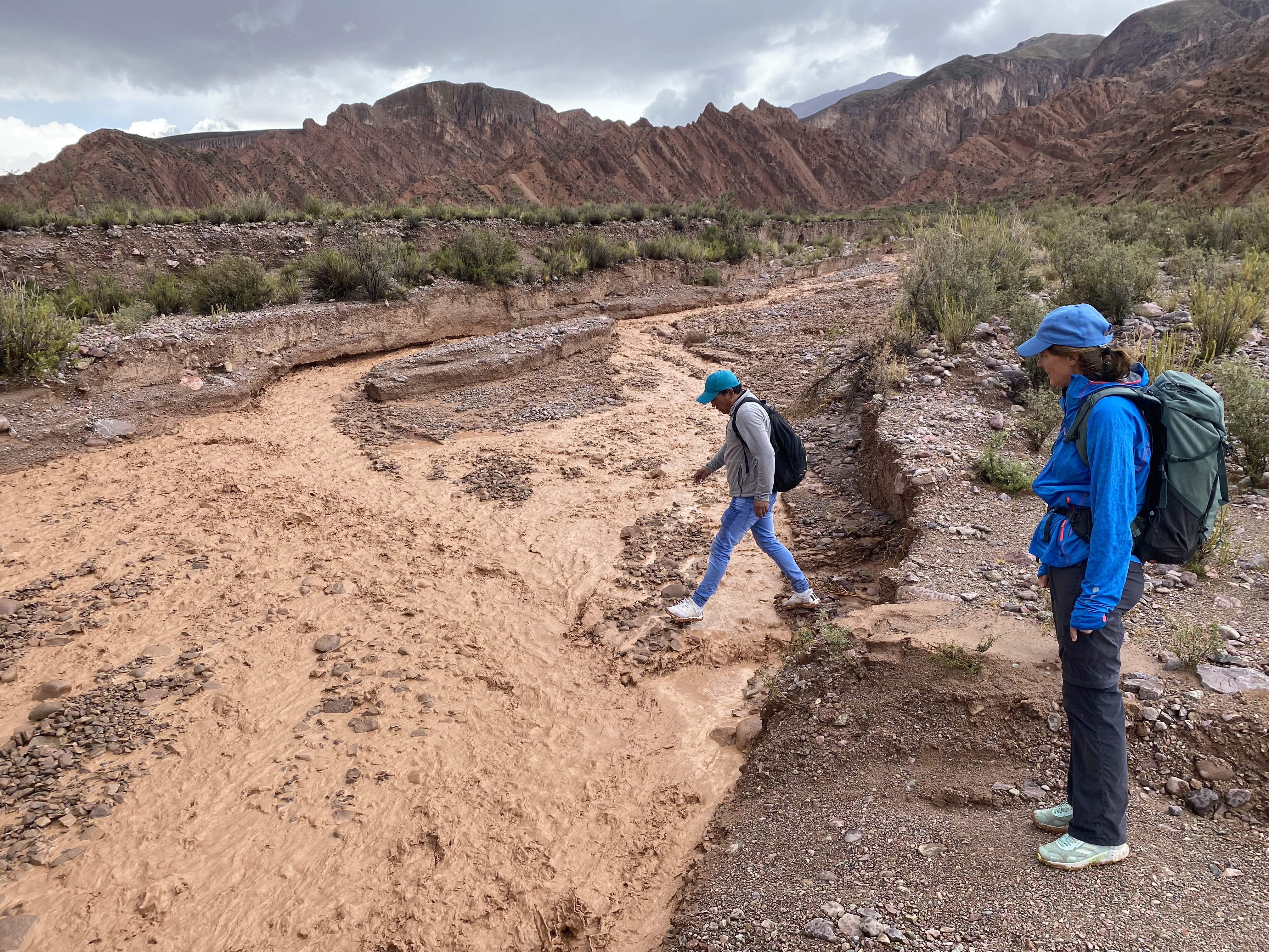 Die Gebirgskette des Hornocal zählt zu den absoluten Must-Sees im Tal. Wir finden den einzigen lokalen Anbieter, der eine Wanderung auf der anderen Talseite, am Fuss der farbigen Felswände, anbietet. Schon die Anreise ist abenteuerlich, mit einer Flussdurchquerung und einer holprigen Schotterpiste. Wir sind froh, dass wir unser eigenes Fahrzeug zurücklassen konnten. Auf der Wanderung begegnen wir keiner Menschenseele, und der Aufstieg in der dünnen Luft bringt uns ganz schön ausser Atem. Am Ende des Tages verstehen wir dann auch, warum es nur diesen einen Anbieter gibt ...