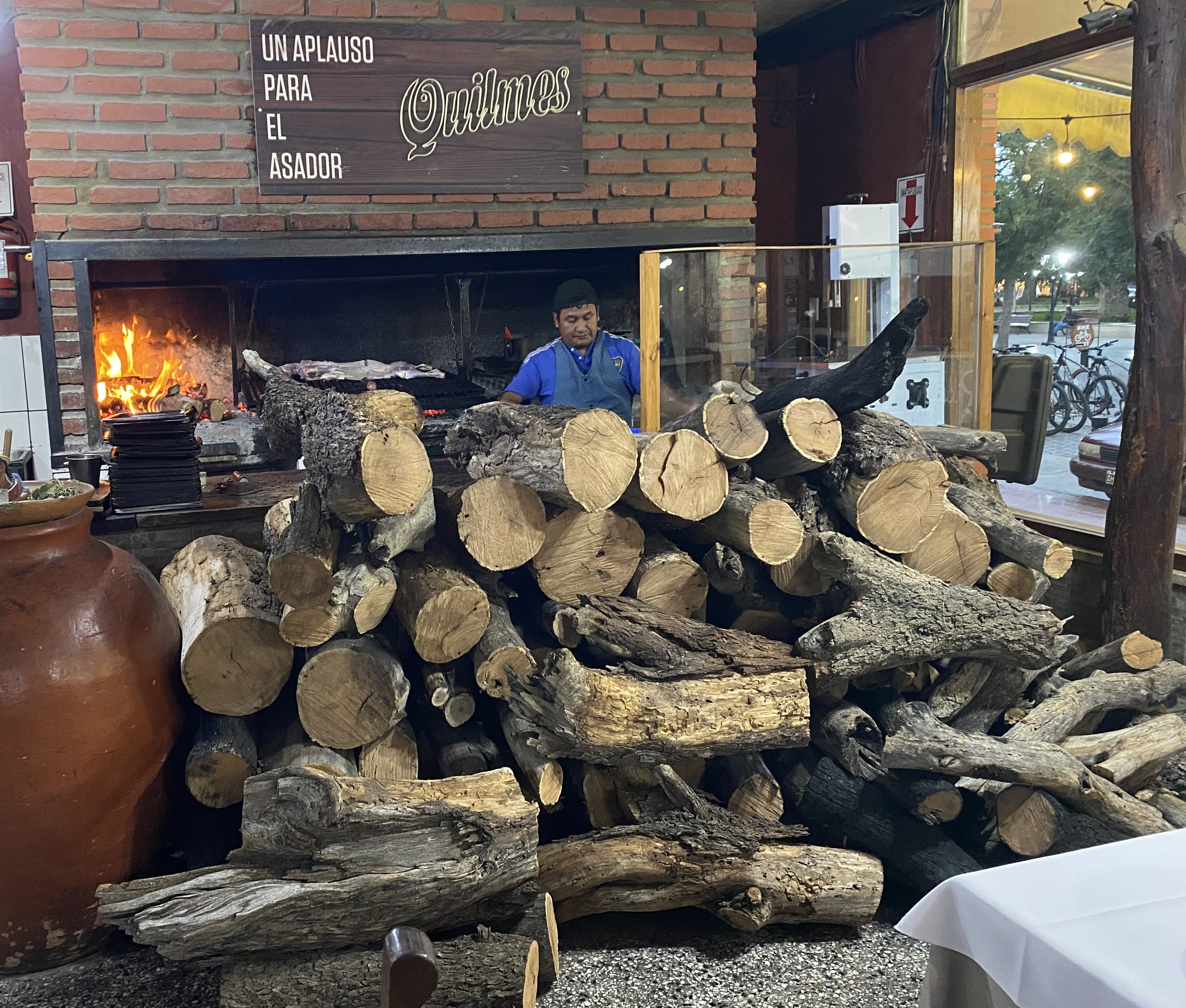 Bevor wir aber in Richtung Norden abbiegen, geniessen wir noch ein traditionelles, fleischlastiges Abendessen in einer Parrilla. In praktisch jedem Restaurant Argentiniens erhält man ein gutes Stück Fleisch, doch nur in einer Parrilla wird dieses auf einem offenen Holzgrill zubereitet. Darum gilt es, genau darauf zu achten, um auf authentische Art der – nebst Katholizismus und Fussball – dritten «Staatsreligion» zu frönen. Das Schild auf dem Bild hinter dem Asador (Grillmeister) ruft dazu auf, ihn spontan mit einem Szenenapplaus anzufeuern und sich bei ihm zu bedanken.