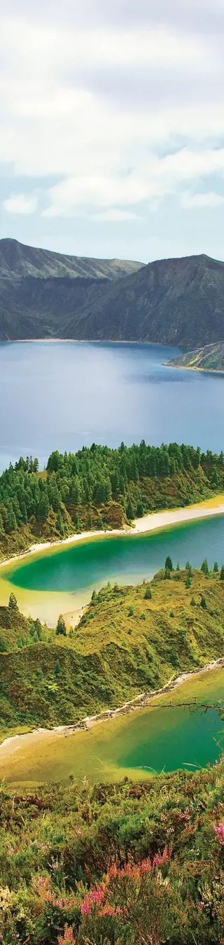Die kesselförmige Struktur vulkanischen Urpsrungs gehört zu den schönsten und beliebtesten Ausflugszielen auf den Azoren. Highlight ist der Vulkansee, der durch seine wunderbaren Farben besticht. Vom Rande des Vulkankraters schimmert das Wasser des grösseren Lagoa Azul in tiefem Blau, während das Wasser des kleineren Lagoa Verde durch Lichtreflexionen des umliegenden Nadelwaldes grünlich glitzert.