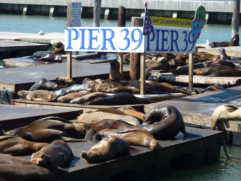 Die Pier 39 ist der wahre Mittelpunkt von Fisherman’s Wharf. Dort wohnen seit 1990 zahlreiche Seelöwen, für die direkt in der unmittelbaren Nähe des Pier schwimmende Stege und Sonnenterrassen gebaut wurden. Hier sonnen sich oft bis zu vierhundert von ihnen und bieten den Reisenden ein grossartiges Fotomotiv.