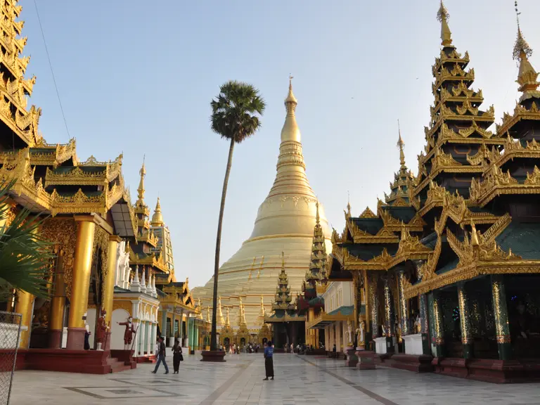 Auch wenn du im Leben schon viele Tempel und Pagoden gesehen hast: die Shwedagon Pagode wird dir die Sprache verschlagen. Es ist das Glänzen fast 100 Meter hohen, komplett mit Gold überzogenen Heiligtums, der leise Gesang der Gläubigen, der Duft von Räucherstäbchen und die ehrfürchtige Atmosphäre. Erlebe Gruppen von Mönchen bei der Gehmeditation und Pilger, die ihre Opfergaben hinterlegen.
