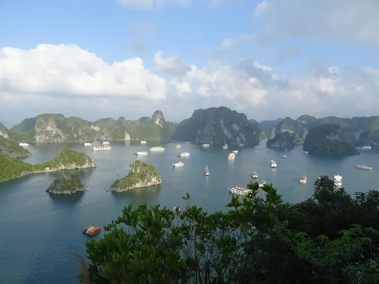 Dschunke-Schiffe sind die perfekte Kombination aus Tradition und Komfort. Auf so einem Schiff durch das Felslabyrinth der Halong-Bucht zu tuckern ist ein einmaliges Erlebnis. Die Kalksteinfelsen die hier aus dem Wasser ragen sehen aus wie Drachenzähne und versetzten dich in eine mystische Welt.