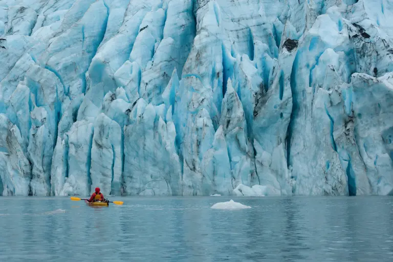 Valdez ist der Ausgangsort für den Besuch der Columbia und Meare Gletscher im Prince William Sound. Hier sind unter anderem gigantische Eismassen, Buckelwale, Orcas, Tümmler und Adler zu sehen, die du mit Seekajaks entdecken kannst. Paddle die Fjorde hinunter bis zu Wasserfällen und bestaune die unberührte Natur.