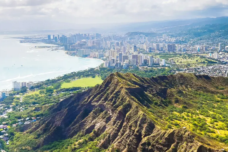 Der Diamond Head ist ein Tuffsteinkrater, der mit seiner eckigen Form Honolulu und Waikiki überragt. Das berühmteste Wahrzeichen Oahus ist 231 Meter hoch und wurde vor mehr als 100.000 Jahren geformt. Vom Kraterrand aus erhältst du einen der atemberaubendsten Blicke über Honolulu und den Süden Oahus.