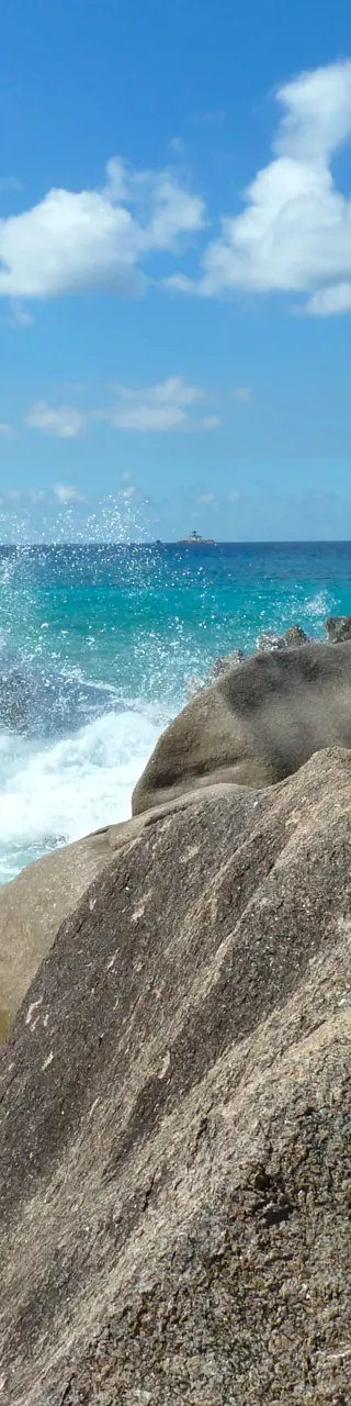An der nordöstlichen Spitze des wunderschönen Strandes «le Beau Vallon» befindet sich eine kleine Insel, auf der nur ein paar wenige Kokospalmen stehen. Der Tauchgang erfolgt entlang grosser Granitblöcke, um die Zackenbarsche, Schildkröten und Schwarzspitzenhaie ihre Runden drehen. Die abfallenden Wände sind mit Weichkorallen bewachsen.
