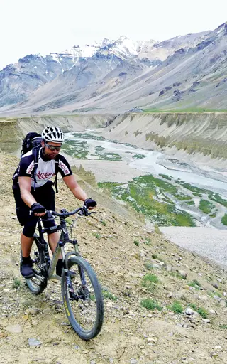 Eine gemütliche Strecke entlang der Indus bietet viel zu sehen, während man auf dem Sattel sitzt. Dem Fluss entlang, bgegenet man Klostern und einheimischen, reichen Feldern und eine grosse Weite. Das alles, umgeben von einer eindrücklichen Berglandschaft. Ein perfekter Tagesauslfug