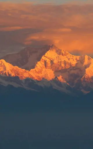 Steh früh morgens auf und begebe dich zum Tiger Hill bei Darjeeling. Der Ausblick auf die von der Sonne angeschienen Berggipfel ist atemberaubend. Mächtig erhebt sich hier mit seinen 8586 Metern der Gipfel des Kangchendzönga, dem dritthöchsten Berg der Welt.