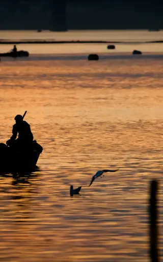 Der heilige Fluss Ganges ist die Lebensader des ländlichen Indiens und eine Pilgerstätte für Millionen von Indern. Mit kleinen Flussbooten und einer eigenen Crew kann man diese ikonische Wasserstrasse entlangfahren und das Land und sein Flussleben von einer ganz anderen Seite entdecken. Während der Fahrt kann, gemütlich auf ein paar Kissen im Schatten, die unglaubliche Szenerie bestaunen.