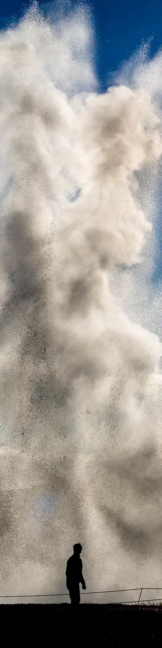 Mitten im goldenen Dreieck findet sich das Springquellengebiet der Geysire, dem Wahrzeichen Islands. In regelmässigen Abständen schiesst das Wasser aus dem Topf in die Höhe. Eine Herausforderung im richtigen Moment den Auslöser zu drücken.