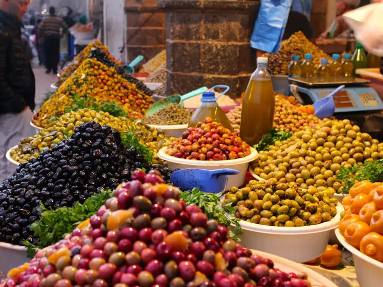 Auf einer Rundreise durch Marokko erwartet dich leckeres Essen. Von gekochten Schafsköpfen, Weisskrautbällchen und Couscous zu unzähligen Dips und Delikatessen aus dem Mittelmeer und dem Atlantik, die Diversität der marokkanischen Küche scheint unerschöpflich. In schicken Restaurants gibt es zusätzlich zum ausgiebigen Essen auch Unterhaltung durch Bauchtänzer und Musik. Die französischen Einflüsse harmonieren köstlich mit den lokalen Produkten. Als kleine Benimmregel für deine Marokko Reise ist es immer gut, zu wissen, dass die Speisen hier meist mit den Händen gegessen werden, wofür vor allem die rechte Hand dient, da die Linke als unrein gilt.