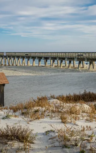 Um den romantischen Sonnenaufgang auf Tybee Island einzufangen, musst du zwar früh aufstehen, aber es lohnt sich allemal! Der Pavillon am Tybee Island Pier ist seit vielen Jahren ein beliebter Ort, der die Magie für sich eingenommen hat. Wenn die Farbe verrückt wird, ist das Lichtspiel perfekt.