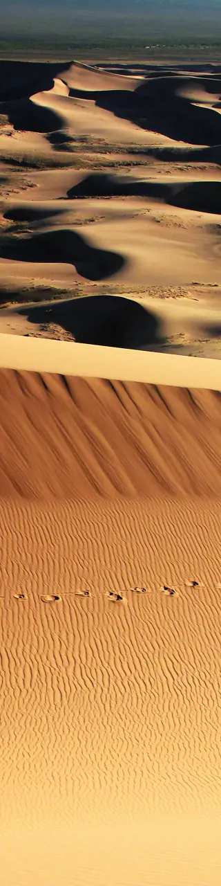 Warm anziehen bitte! Denn eine der faszinierendsten Sehenswürdigkeiten ist wohl die Wüste Gobi. Und obwohl Wüste heiss klingt, können im Sommer Temperaturunterschiede von 40 bis 0 Grad zustande kommen. Da solltest du auf jeden Fall einen dicken Pullover oder eine Winterjacke dabeihaben. Die Wüste Gobi ist nach der Sahara die grösste Wüste der Welt und zeigt sich mit vielen überraschenden Gesichtern. Von Sanddünen, Gesteinsformationen bis hin zu unendlichen Steppen gibt es hier während deiner Mongolei Reise viel zu entdecken. Ein absolutes Highlight ist der Gletscher mitten in der Wüste.