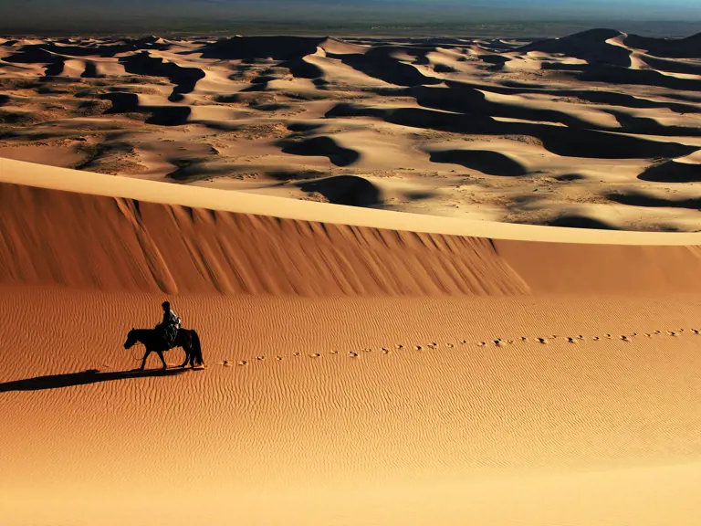 Ob zu Pferd durch die Steppe oder mit Kamelen durch die Wüste: Bei Begegnungen mit mongolischen Nomaden erfährst du, was Tradition bedeutet. Du probierst hausgemachte Milchprodukte, lernst ihre Tiere kennen und erlebst, wie eng Mensch und Natur hier verbunden sind. Authentisch, herzlich, unvergesslich.