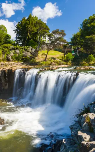 Erlebe was die Maori als "lauter Donnernder Lärm" bezeichneten. Den Wasserfall kannst du entweder per Boot auf Waitangi River aus Paihia erreichen oder über einen markierten Fusspfad