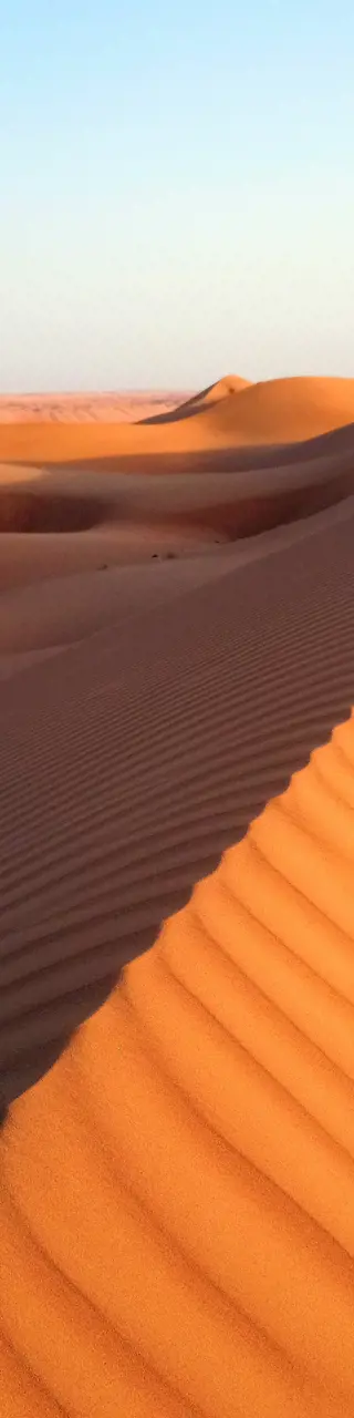 In der Rub Al Khali Wüste befindest du dich in der grössten Sandwüste der Erde. Dieses Sandmeer ist sogar grösser als die Sahara. Endlose Dünenlandschaften liegen vor dir, keine Menschenseele weit und breit. Tatsächlich ist diese Wüste sehr lebensfeindlich, sogar die Beduinen leben nur an ihrem Rand. Den Übernamen «leeres Viertel» trägt die Wüste nicht umsonst. Lass dich von dieser Weite und Leere verzaubern.