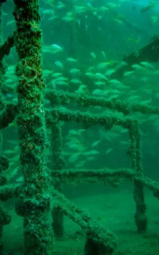 Bereits in 6 Metern Tiefe siehst du es, das Wrack der Al Munasir. Wegen seiner Schräglage senkt es sich bis auf 30 Meter hinunter. Viele Korallen haben sich darauf niedergelassen, aber vor allem wimmelt es von Fischen. Du findest dich mitten in Schwärmen von Schnappern, Füsilieren und anderen Fischen wieder. Erkunde die Brücke von innen, auch wenn du die ehemalige Kommandozentrale möglicherweise mit einer Muräne teilst.