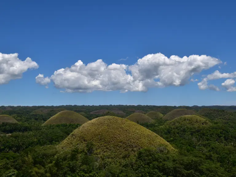 Vor dir erheben sich über hunderte, riesige «Maulwurfshügel» aus der weiten Landschaft, ein geniales, geologisches Highlight. Die ansonsten begrünten Hügel verfärben sich in der Trockenzeit braun, daher ihr Name «Chocolate Hills». In Carmen kannst du sogar einen der natürlichen Kegel erklimmen.
