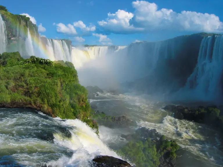 Die Iguassu Wasserfälle sind ein wahres Naturspektakel, das sich an der Grenze zwischen Brasilien und Argentinien erstreckt. Ein Grenzübertritt ist unkompliziert, und es lohnt sich, die atemberaubende Kulisse von beiden Seiten aus zu bewundern. Während du auf der argentinischen Seite den Wasserfällen näher kommst und ideal für Wanderungen geeignet ist, bietet die brasilianische Seite eine grosszügigere Panoramasicht.