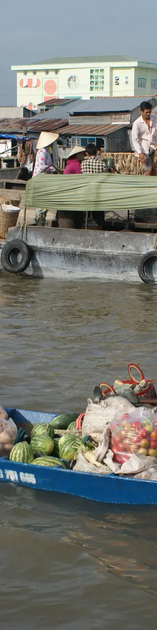 Den vielen, kleinen Nebenarmen des Mekong entlang, vorbei an Werkstätten, Shops und Wohnhäusern , die von saftig-grünen Reisfeldern und Bananenplantagen durchbrochen werden. So kommt man Stück für Stück näher an das leben der lokalen Bevölkerung.